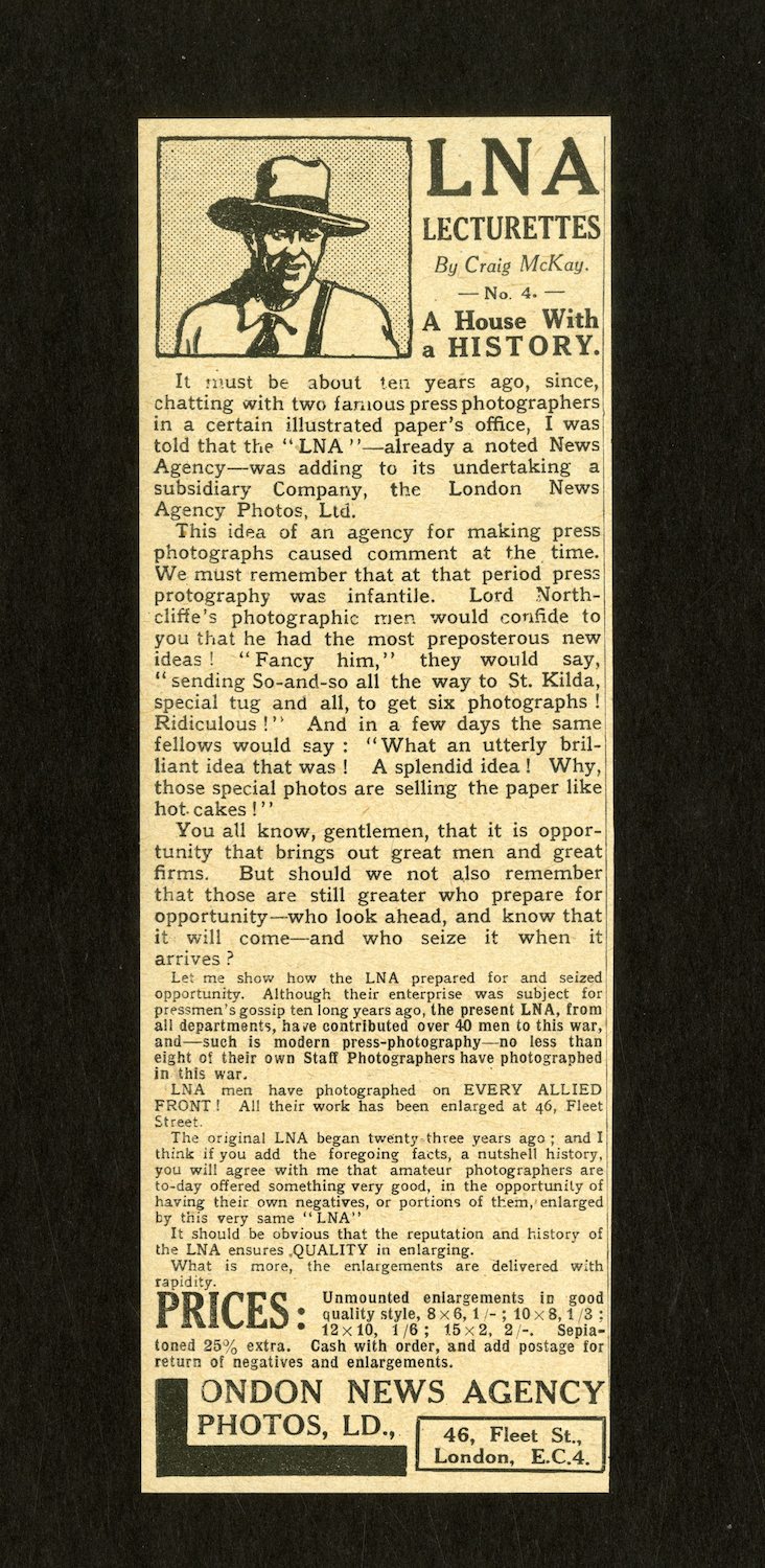1918 Advertisement feature for London News Agency Photos by Craig McKay
