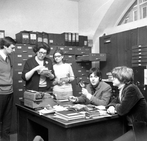 As a suggestion for the PPHP please find the attached preview images you may wish to use – The day Macca visited the archive in 1968. Not much of a caption that relates to the staff in the photos, or the reason for his visit however.